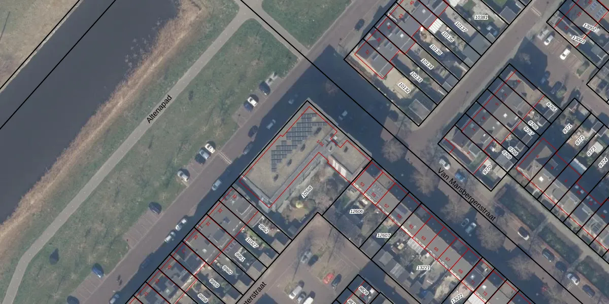 Het perceel waarop Van Marsbergenstraat 9 staat heeft een oppervlakte van 1060 m². Dit is een zeer groot perceel. De perceeloppervlakte wordt geregistreerd door het Kadaster. Gedetailleerde informatie over de maten van dit perceel kunt u vinden in het rapport Kadastrale kaart met maatvoering van Van Marsbergenstraat 9.