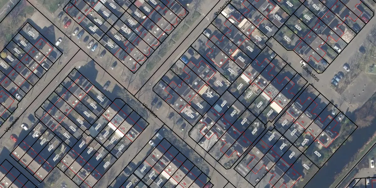 Het perceel waarop Veldersbos 26 staat heeft een oppervlakte van 216 m². Dit is een middelgroot perceel. De perceeloppervlakte wordt geregistreerd door het Kadaster. Gedetailleerde informatie over de maten van dit perceel kunt u vinden in het rapport Kadastrale kaart met maatvoering van Veldersbos 26.