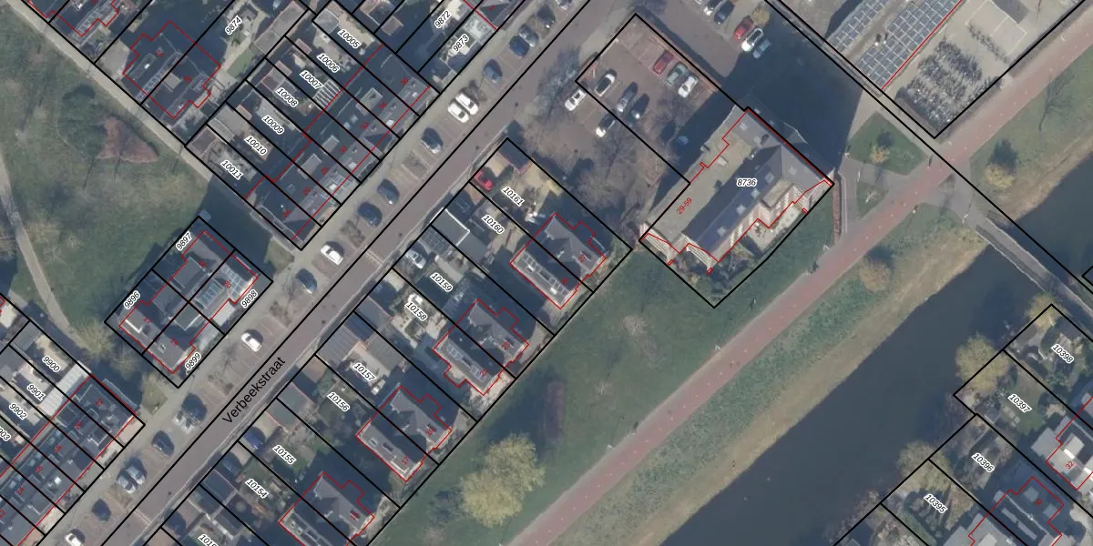 Het perceel waarop Verbeekstraat 25 staat heeft een oppervlakte van 324 m². Dit is een groot perceel. De perceeloppervlakte wordt geregistreerd door het Kadaster. Gedetailleerde informatie over de maten van dit perceel kunt u vinden in het rapport Kadastrale kaart met maatvoering van Verbeekstraat 25.