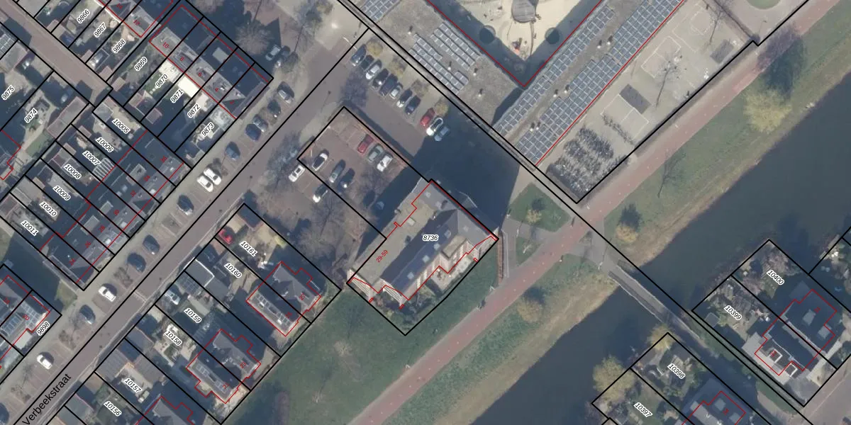 Het perceel waarop Verbeekstraat 33 staat heeft een oppervlakte van 1080 m². Dit is een zeer groot perceel. De perceeloppervlakte wordt geregistreerd door het Kadaster. Gedetailleerde informatie over de maten van dit perceel kunt u vinden in het rapport Kadastrale kaart met maatvoering van Verbeekstraat 33.