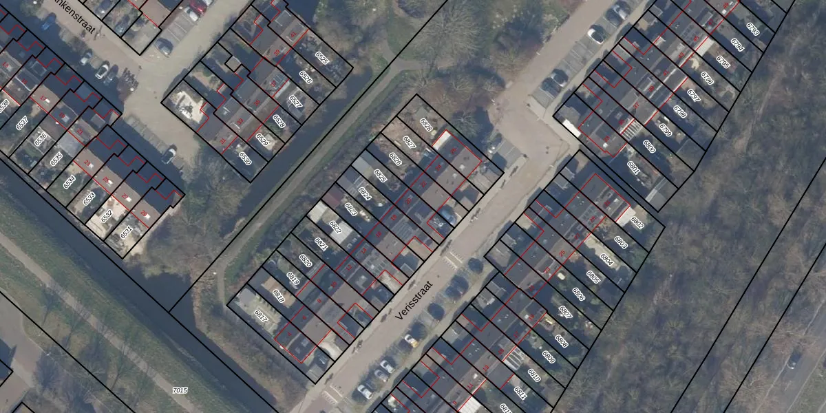 Het perceel waarop Verisstraat 20 staat heeft een oppervlakte van 155 m². Dit is een middelgroot perceel. De perceeloppervlakte wordt geregistreerd door het Kadaster. Gedetailleerde informatie over de maten van dit perceel kunt u vinden in het rapport Kadastrale kaart met maatvoering van Verisstraat 20.