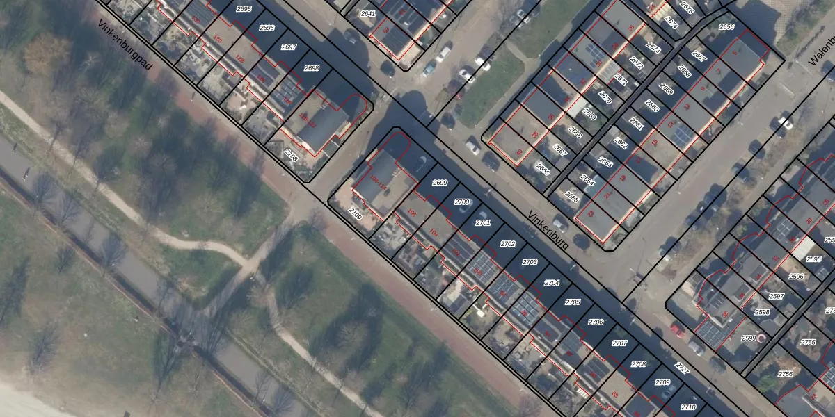 Het perceel waarop Vinkenburg 106 staat heeft een oppervlakte van 180 m². Dit is een middelgroot perceel. De perceeloppervlakte wordt geregistreerd door het Kadaster. Gedetailleerde informatie over de maten van dit perceel kunt u vinden in het rapport Kadastrale kaart met maatvoering van Vinkenburg 106.