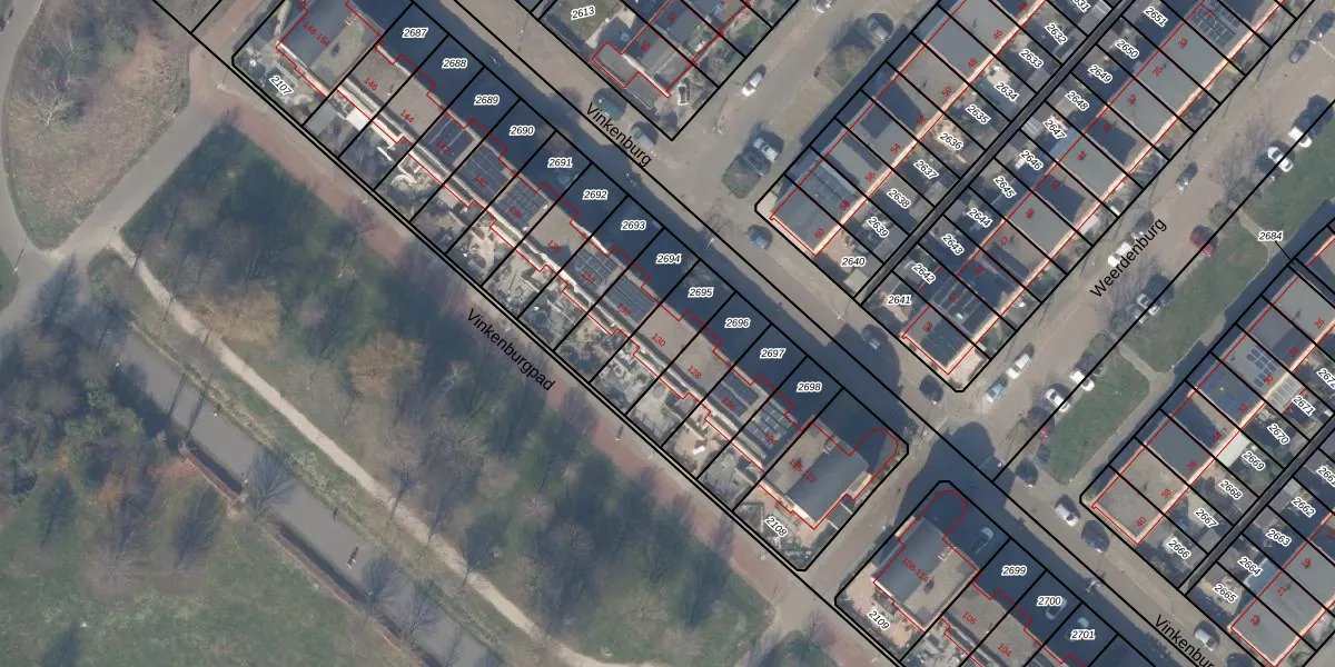 Het perceel waarop Vinkenburg 130 staat heeft een oppervlakte van 180 m². Dit is een middelgroot perceel. De perceeloppervlakte wordt geregistreerd door het Kadaster. Gedetailleerde informatie over de maten van dit perceel kunt u vinden in het rapport Kadastrale kaart met maatvoering van Vinkenburg 130.