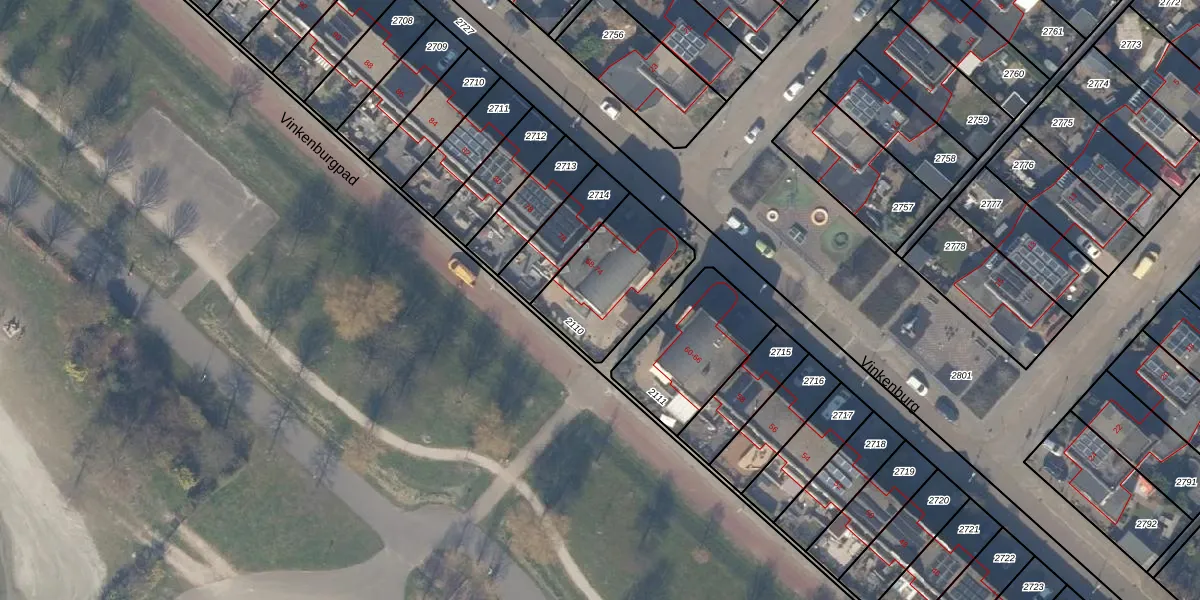 Het perceel waarop Vinkenburg 70 staat heeft een oppervlakte van 383 m². Dit is een groot perceel. De perceeloppervlakte wordt geregistreerd door het Kadaster. Gedetailleerde informatie over de maten van dit perceel kunt u vinden in het rapport Kadastrale kaart met maatvoering van Vinkenburg 70.