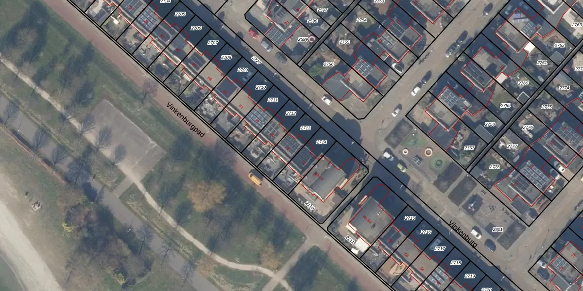 Het perceel waarop Vinkenburg 78 staat heeft een oppervlakte van 180 m². Dit is een middelgroot perceel. De perceeloppervlakte wordt geregistreerd door het Kadaster. Gedetailleerde informatie over de maten van dit perceel kunt u vinden in het rapport Kadastrale kaart met maatvoering van Vinkenburg 78.