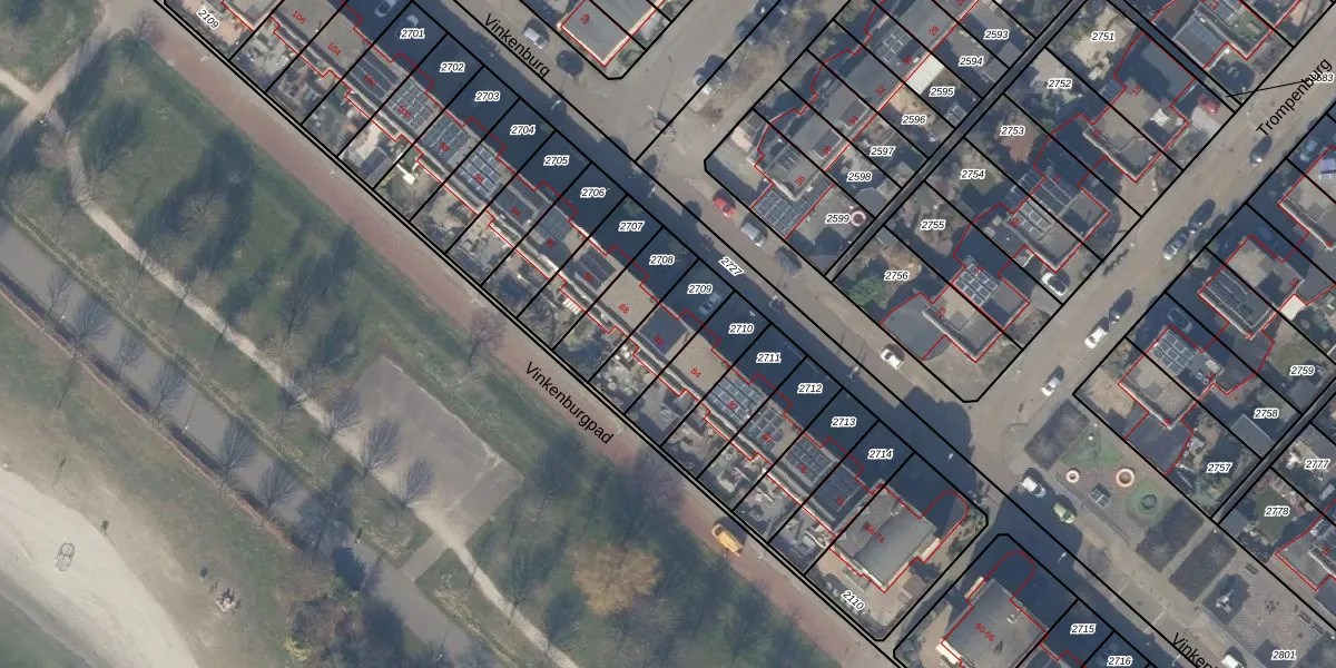 Het perceel waarop Vinkenburg 86 staat heeft een oppervlakte van 180 m². Dit is een middelgroot perceel. De perceeloppervlakte wordt geregistreerd door het Kadaster. Gedetailleerde informatie over de maten van dit perceel kunt u vinden in het rapport Kadastrale kaart met maatvoering van Vinkenburg 86.