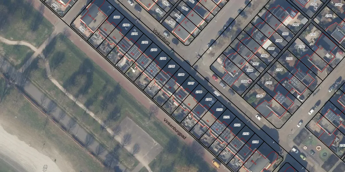Het perceel waarop Vinkenburg 92 staat heeft een oppervlakte van 180 m². Dit is een middelgroot perceel. De perceeloppervlakte wordt geregistreerd door het Kadaster. Gedetailleerde informatie over de maten van dit perceel kunt u vinden in het rapport Kadastrale kaart met maatvoering van Vinkenburg 92.