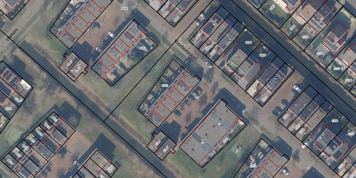 Het perceel waarop Vuurboetsduin 152 staat heeft een oppervlakte van 615 m². Dit is een groot perceel. De perceeloppervlakte wordt geregistreerd door het Kadaster. Gedetailleerde informatie over de maten van dit perceel kunt u vinden in het rapport Kadastrale kaart met maatvoering van Vuurboetsduin 152.