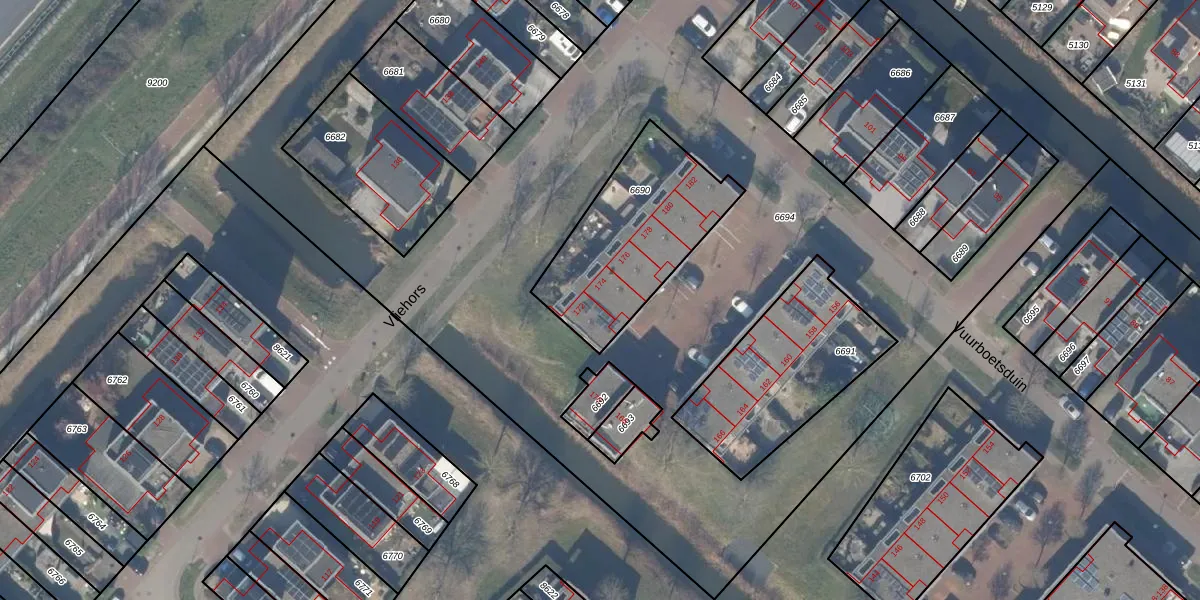 Het perceel waarop Vuurboetsduin 174 staat heeft een oppervlakte van 618 m². Dit is een groot perceel. De perceeloppervlakte wordt geregistreerd door het Kadaster. Gedetailleerde informatie over de maten van dit perceel kunt u vinden in het rapport Kadastrale kaart met maatvoering van Vuurboetsduin 174.