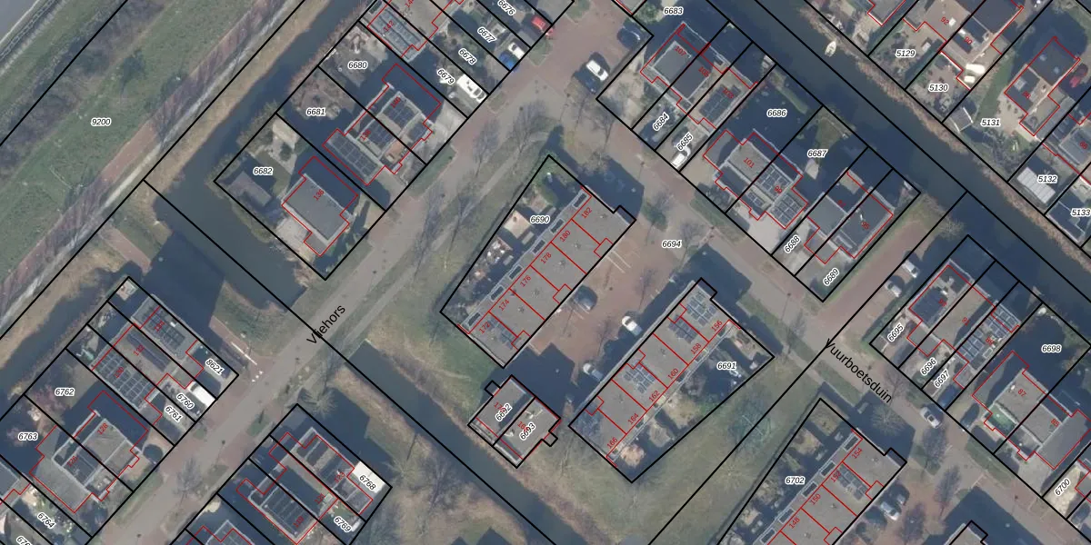 Het perceel waarop Vuurboetsduin 178 staat heeft een oppervlakte van 618 m². Dit is een groot perceel. De perceeloppervlakte wordt geregistreerd door het Kadaster. Gedetailleerde informatie over de maten van dit perceel kunt u vinden in het rapport Kadastrale kaart met maatvoering van Vuurboetsduin 178.