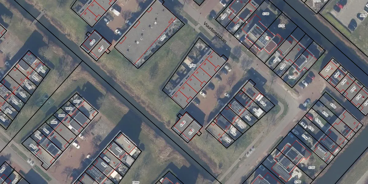 Het perceel waarop Vuurboetsduin 32 staat heeft een oppervlakte van 612 m². Dit is een groot perceel. De perceeloppervlakte wordt geregistreerd door het Kadaster. Gedetailleerde informatie over de maten van dit perceel kunt u vinden in het rapport Kadastrale kaart met maatvoering van Vuurboetsduin 32.