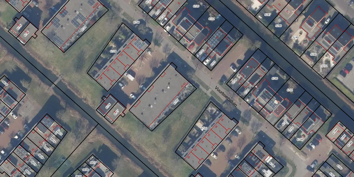 Vuurboetsduin 44 is gelegen op kadastraal perceel HLM03AD6725. Deze kadastrale aanduiding is uniek en wordt gebruikt door het Kadaster om eigendomsrechten en andere zakelijke rechten vast te leggen. Het perceel maakt onderdeel uit van de kadastrale gemeente Haarlemmermeer.