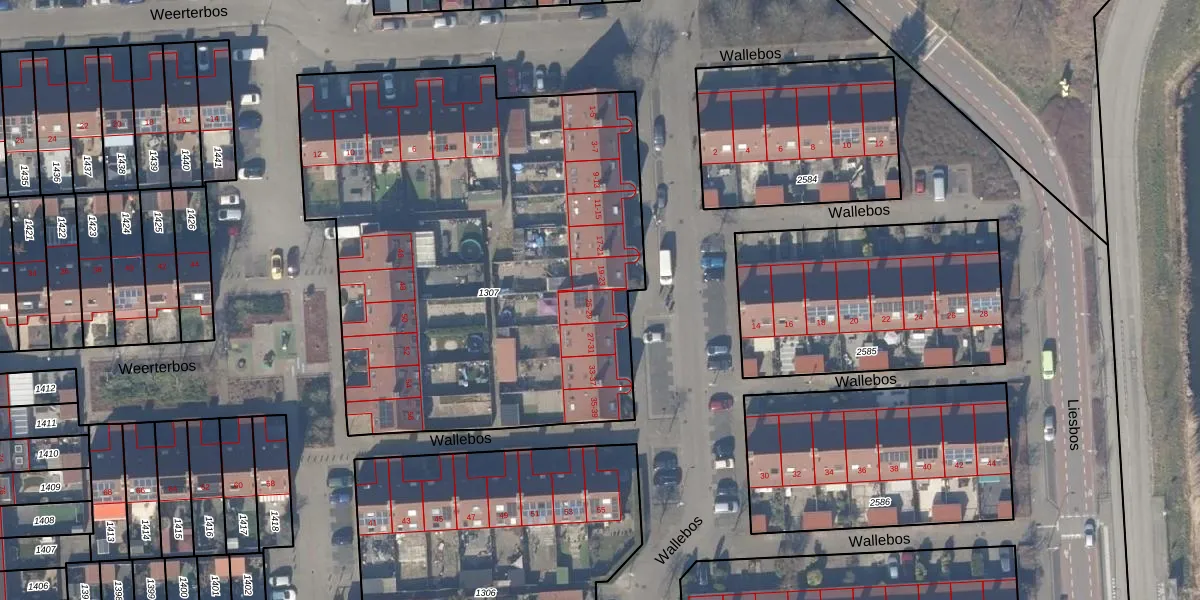 Het perceel waarop Wallebos 25 staat heeft een oppervlakte van 2993 m². Dit is een zeer groot perceel. De perceeloppervlakte wordt geregistreerd door het Kadaster. Gedetailleerde informatie over de maten van dit perceel kunt u vinden in het rapport Kadastrale kaart met maatvoering van Wallebos 25.