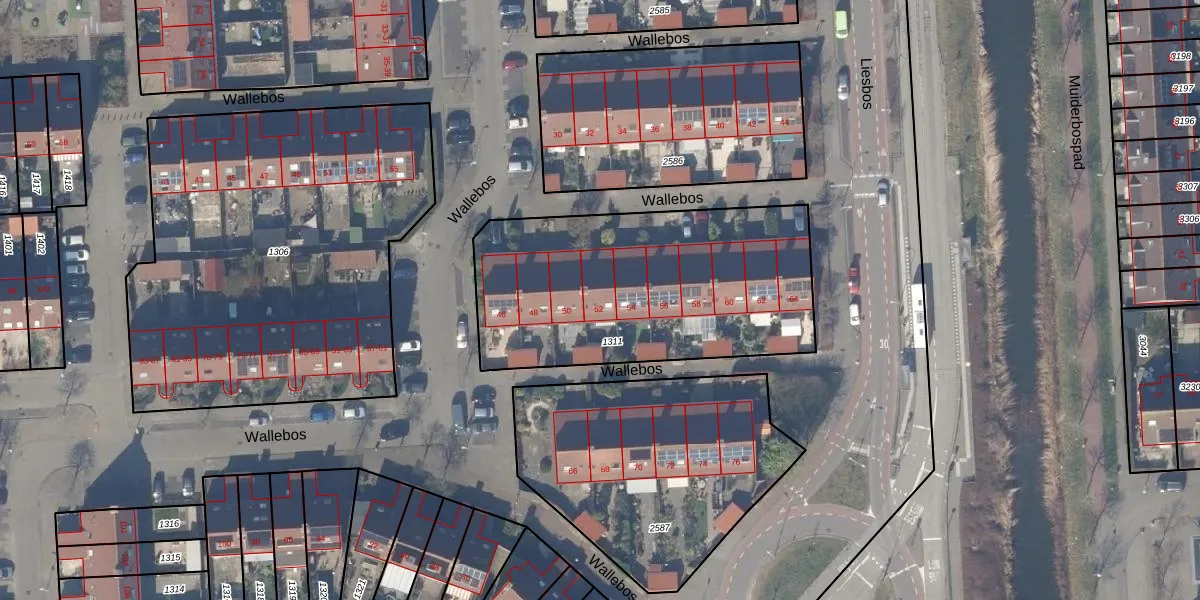 Het perceel waarop Wallebos 52 staat heeft een oppervlakte van 1370 m². Dit is een zeer groot perceel. De perceeloppervlakte wordt geregistreerd door het Kadaster. Gedetailleerde informatie over de maten van dit perceel kunt u vinden in het rapport Kadastrale kaart met maatvoering van Wallebos 52.