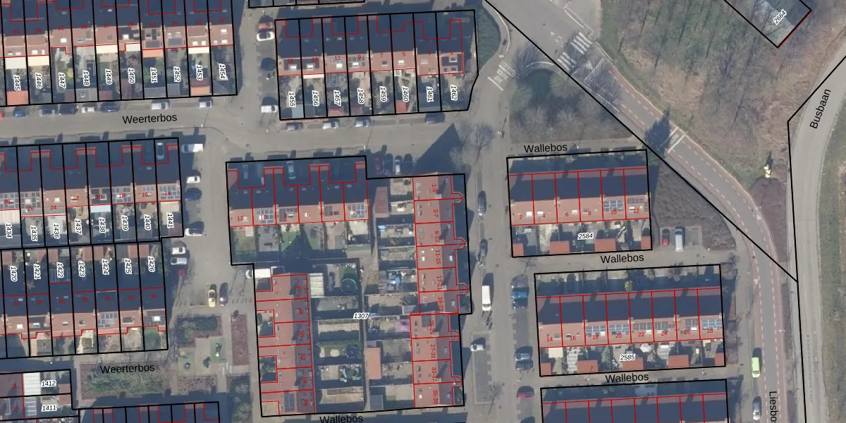 Het perceel waarop Wallebos 7 staat heeft een oppervlakte van 2993 m². Dit is een zeer groot perceel. De perceeloppervlakte wordt geregistreerd door het Kadaster. Gedetailleerde informatie over de maten van dit perceel kunt u vinden in het rapport Kadastrale kaart met maatvoering van Wallebos 7.