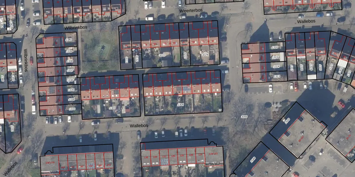 Het perceel waarop Wallebos 97 staat heeft een oppervlakte van 1039 m². Dit is een zeer groot perceel. De perceeloppervlakte wordt geregistreerd door het Kadaster. Gedetailleerde informatie over de maten van dit perceel kunt u vinden in het rapport Kadastrale kaart met maatvoering van Wallebos 97.