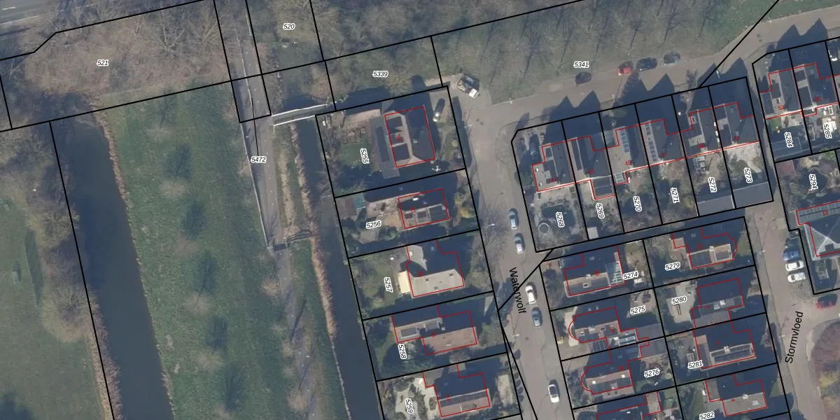 Het perceel waarop Waterwolf 30 staat heeft een oppervlakte van 482 m². Dit is een groot perceel. De perceeloppervlakte wordt geregistreerd door het Kadaster. Gedetailleerde informatie over de maten van dit perceel kunt u vinden in het rapport Kadastrale kaart met maatvoering van Waterwolf 30.