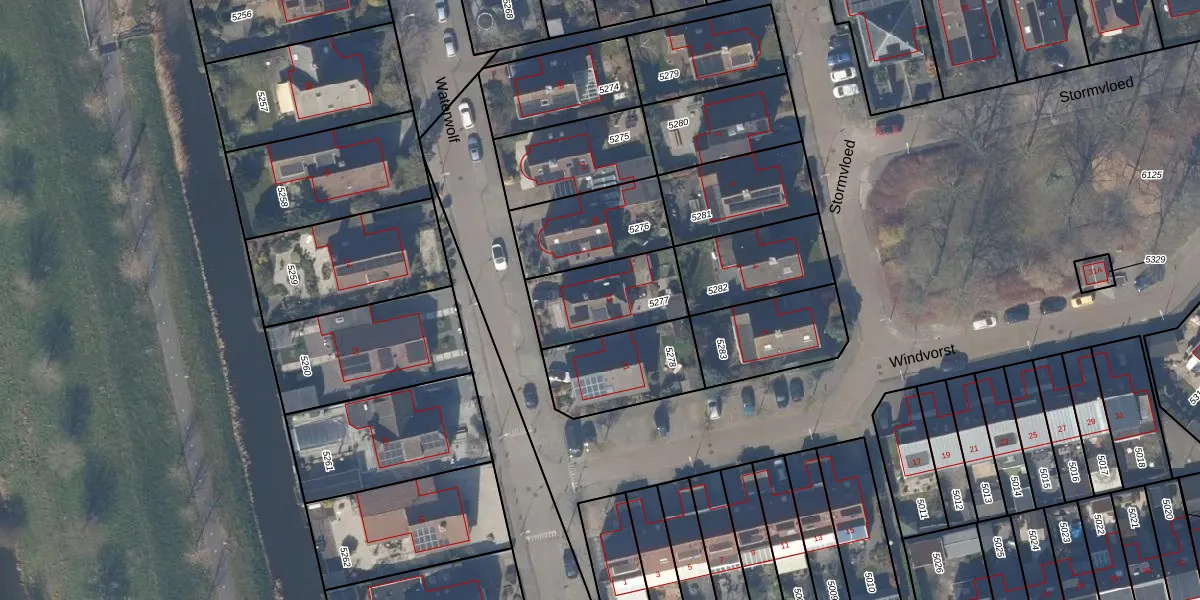 Het perceel waarop Waterwolf 33 staat heeft een oppervlakte van 301 m². Dit is een groot perceel. De perceeloppervlakte wordt geregistreerd door het Kadaster. Gedetailleerde informatie over de maten van dit perceel kunt u vinden in het rapport Kadastrale kaart met maatvoering van Waterwolf 33.