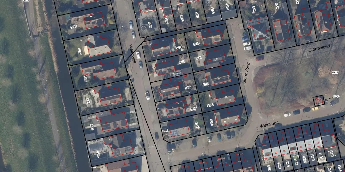 Het perceel waarop Waterwolf 35 staat heeft een oppervlakte van 299 m². Dit is een middelgroot perceel. De perceeloppervlakte wordt geregistreerd door het Kadaster. Gedetailleerde informatie over de maten van dit perceel kunt u vinden in het rapport Kadastrale kaart met maatvoering van Waterwolf 35.