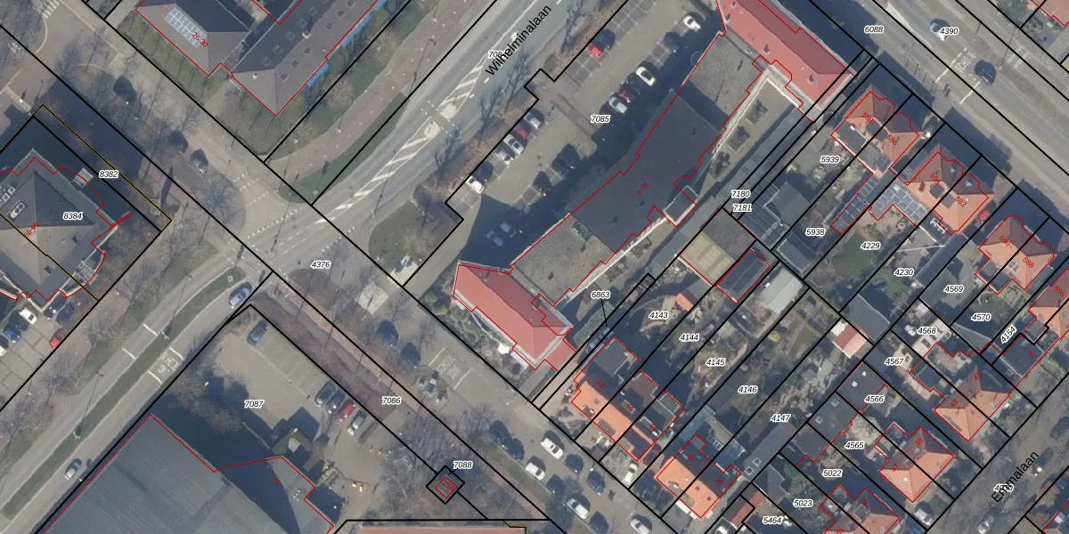 Het perceel waarop Wilhelminalaan 48 staat heeft een oppervlakte van 3375 m². Dit is een zeer groot perceel. De perceeloppervlakte wordt geregistreerd door het Kadaster. Gedetailleerde informatie over de maten van dit perceel kunt u vinden in het rapport Kadastrale kaart met maatvoering van Wilhelminalaan 48.