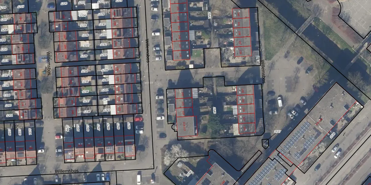 Willemsbos 123 is gelegen op kadastraal perceel HLM03P2540. Deze kadastrale aanduiding is uniek en wordt gebruikt door het Kadaster om eigendomsrechten en andere zakelijke rechten vast te leggen. Het perceel maakt onderdeel uit van de kadastrale gemeente Haarlemmermeer.