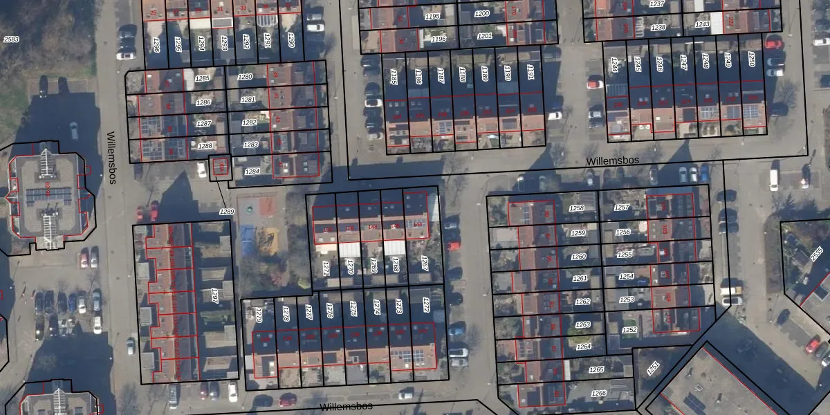 Het perceel waarop Willemsbos 144 staat heeft een oppervlakte van 202 m². Dit is een middelgroot perceel. De perceeloppervlakte wordt geregistreerd door het Kadaster. Gedetailleerde informatie over de maten van dit perceel kunt u vinden in het rapport Kadastrale kaart met maatvoering van Willemsbos 144.