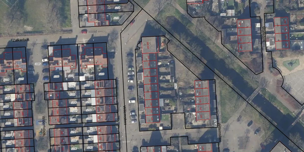 Het perceel waarop Willemsbos 157 staat heeft een oppervlakte van 2345 m². Dit is een zeer groot perceel. De perceeloppervlakte wordt geregistreerd door het Kadaster. Gedetailleerde informatie over de maten van dit perceel kunt u vinden in het rapport Kadastrale kaart met maatvoering van Willemsbos 157.