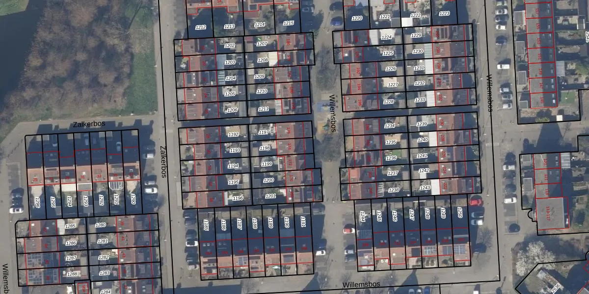 Het perceel waarop Willemsbos 174 staat heeft een oppervlakte van 117 m². Dit is een middelgroot perceel. De perceeloppervlakte wordt geregistreerd door het Kadaster. Gedetailleerde informatie over de maten van dit perceel kunt u vinden in het rapport Kadastrale kaart met maatvoering van Willemsbos 174.