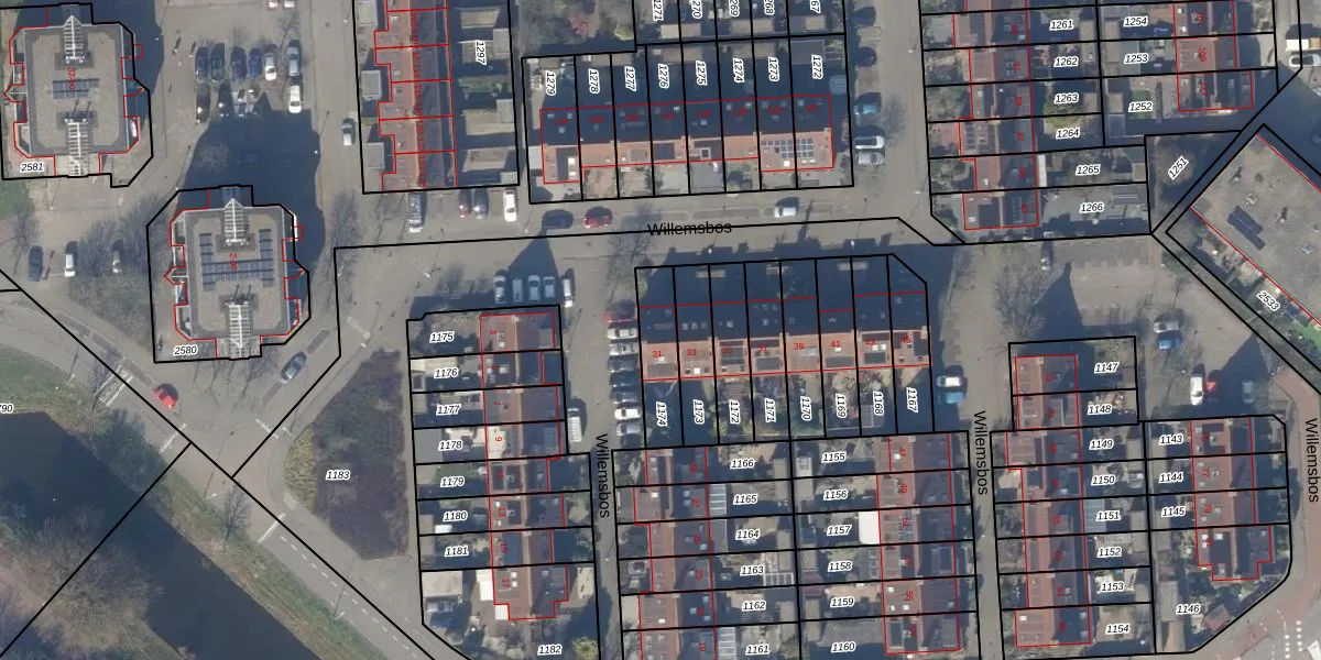 Het perceel waarop Willemsbos 31 staat heeft een oppervlakte van 155 m². Dit is een middelgroot perceel. De perceeloppervlakte wordt geregistreerd door het Kadaster. Gedetailleerde informatie over de maten van dit perceel kunt u vinden in het rapport Kadastrale kaart met maatvoering van Willemsbos 31.