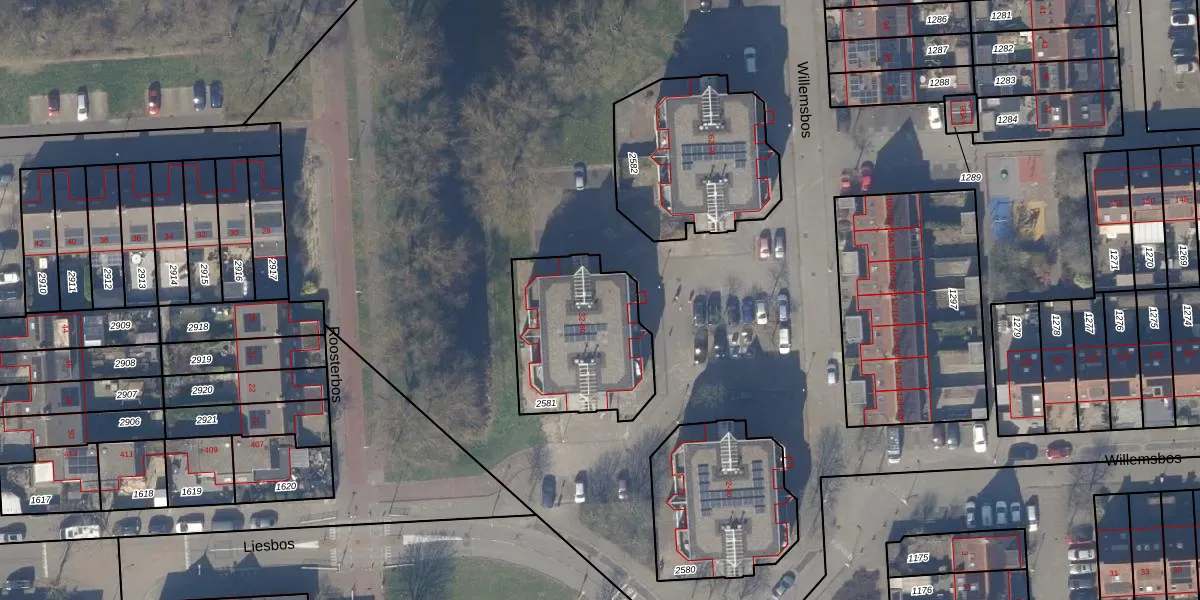 Het perceel waarop Willemsbos 52 staat heeft een oppervlakte van 551 m². Dit is een groot perceel. De perceeloppervlakte wordt geregistreerd door het Kadaster. Gedetailleerde informatie over de maten van dit perceel kunt u vinden in het rapport Kadastrale kaart met maatvoering van Willemsbos 52.