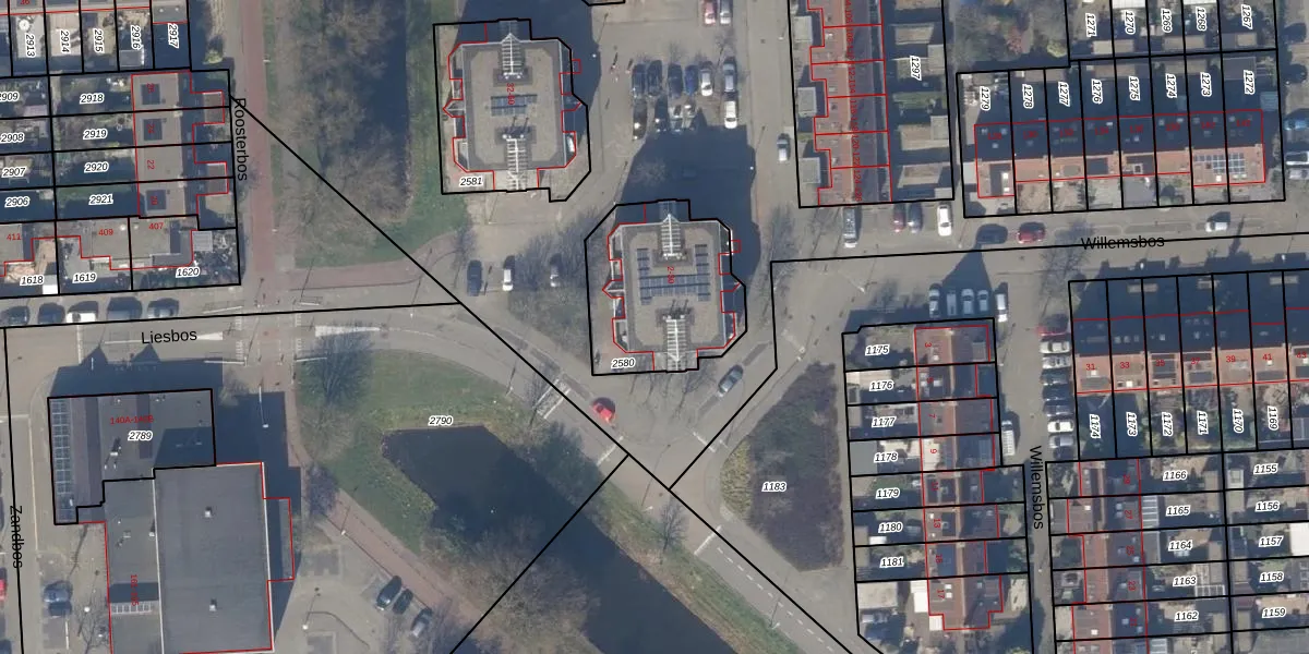 Het perceel waarop Willemsbos 6 staat heeft een oppervlakte van 550 m². Dit is een groot perceel. De perceeloppervlakte wordt geregistreerd door het Kadaster. Gedetailleerde informatie over de maten van dit perceel kunt u vinden in het rapport Kadastrale kaart met maatvoering van Willemsbos 6.