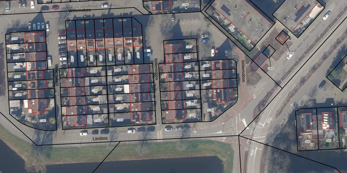 Het perceel waarop Willemsbos 65 staat heeft een oppervlakte van 126 m². Dit is een middelgroot perceel. De perceeloppervlakte wordt geregistreerd door het Kadaster. Gedetailleerde informatie over de maten van dit perceel kunt u vinden in het rapport Kadastrale kaart met maatvoering van Willemsbos 65.