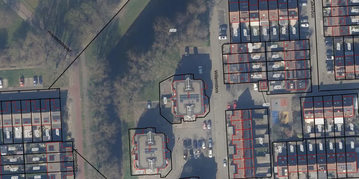 Het perceel waarop Willemsbos 84 staat heeft een oppervlakte van 621 m². Dit is een groot perceel. De perceeloppervlakte wordt geregistreerd door het Kadaster. Gedetailleerde informatie over de maten van dit perceel kunt u vinden in het rapport Kadastrale kaart met maatvoering van Willemsbos 84.