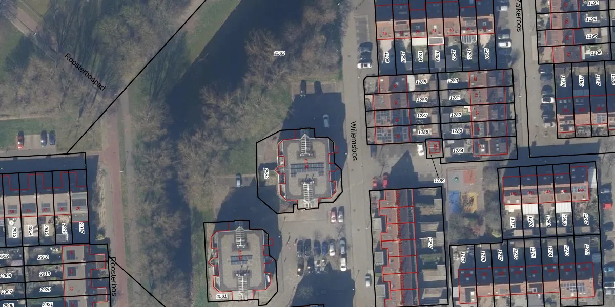 Het perceel waarop Willemsbos 86 staat heeft een oppervlakte van 621 m². Dit is een groot perceel. De perceeloppervlakte wordt geregistreerd door het Kadaster. Gedetailleerde informatie over de maten van dit perceel kunt u vinden in het rapport Kadastrale kaart met maatvoering van Willemsbos 86.