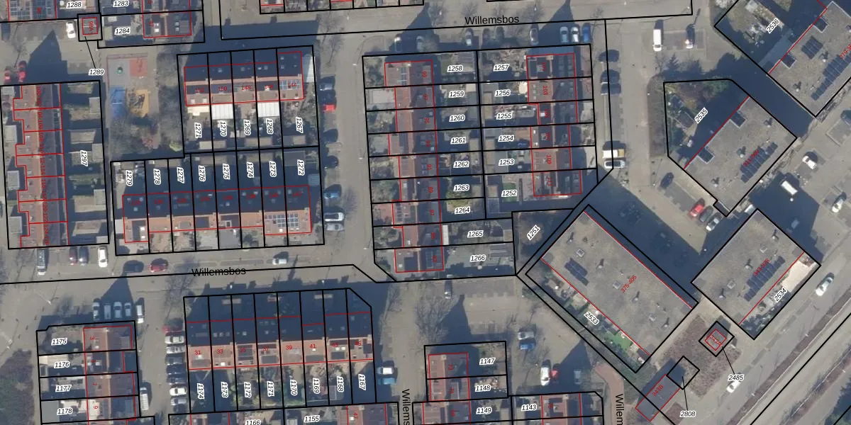 Het perceel waarop Willemsbos 87 staat heeft een oppervlakte van 145 m². Dit is een middelgroot perceel. De perceeloppervlakte wordt geregistreerd door het Kadaster. Gedetailleerde informatie over de maten van dit perceel kunt u vinden in het rapport Kadastrale kaart met maatvoering van Willemsbos 87.