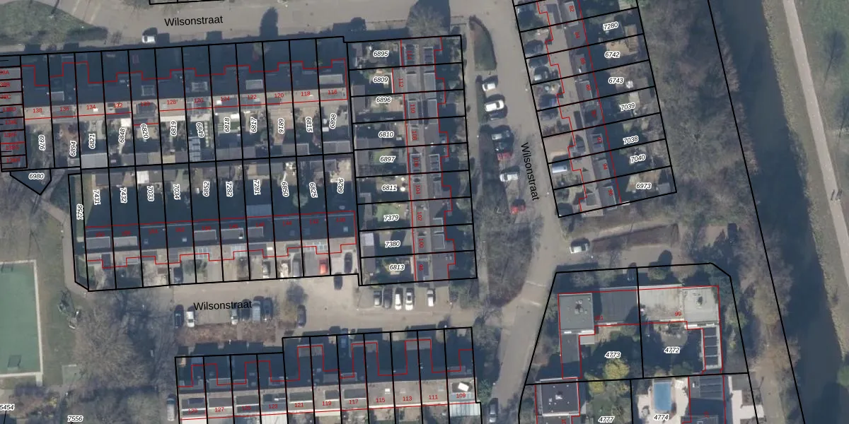 Het perceel waarop Wilsonstraat 102 staat heeft een oppervlakte van 171 m². Dit is een middelgroot perceel. De perceeloppervlakte wordt geregistreerd door het Kadaster. Gedetailleerde informatie over de maten van dit perceel kunt u vinden in het rapport Kadastrale kaart met maatvoering van Wilsonstraat 102.