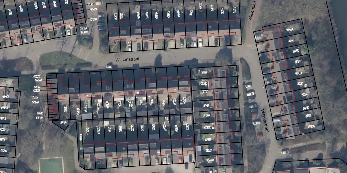 Het perceel waarop Wilsonstraat 118 staat heeft een oppervlakte van 174 m². Dit is een middelgroot perceel. De perceeloppervlakte wordt geregistreerd door het Kadaster. Gedetailleerde informatie over de maten van dit perceel kunt u vinden in het rapport Kadastrale kaart met maatvoering van Wilsonstraat 118.