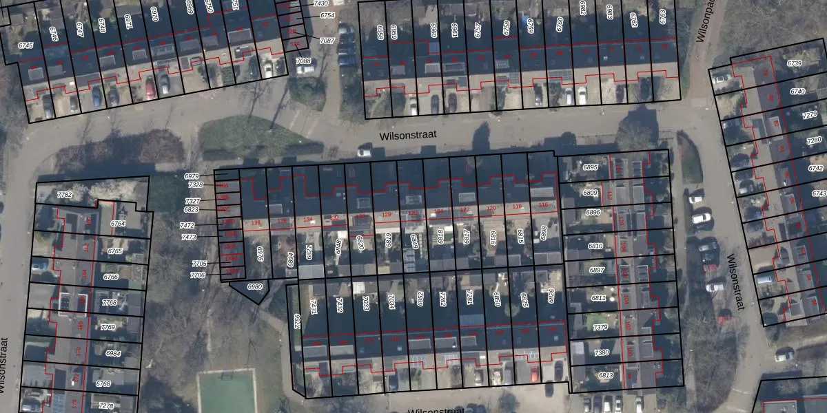 Het perceel waarop Wilsonstraat 126 staat heeft een oppervlakte van 175 m². Dit is een middelgroot perceel. De perceeloppervlakte wordt geregistreerd door het Kadaster. Gedetailleerde informatie over de maten van dit perceel kunt u vinden in het rapport Kadastrale kaart met maatvoering van Wilsonstraat 126.
