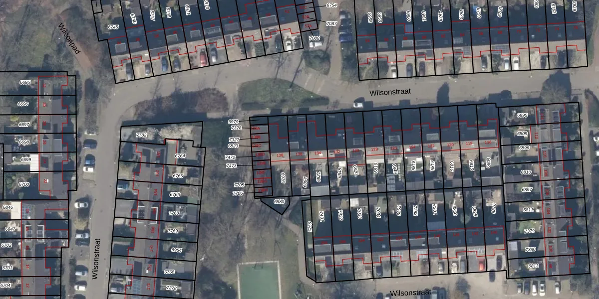Het perceel waarop Wilsonstraat 136 staat heeft een oppervlakte van 170 m². Dit is een middelgroot perceel. De perceeloppervlakte wordt geregistreerd door het Kadaster. Gedetailleerde informatie over de maten van dit perceel kunt u vinden in het rapport Kadastrale kaart met maatvoering van Wilsonstraat 136.