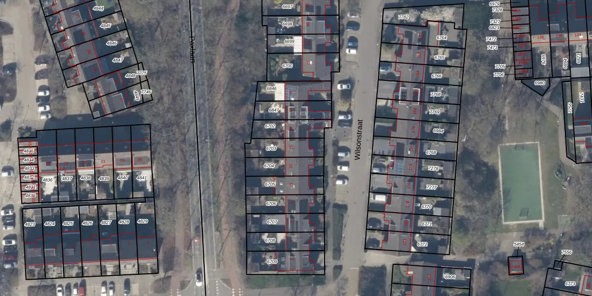 Het perceel waarop Wilsonstraat 14 staat heeft een oppervlakte van 165 m². Dit is een middelgroot perceel. De perceeloppervlakte wordt geregistreerd door het Kadaster. Gedetailleerde informatie over de maten van dit perceel kunt u vinden in het rapport Kadastrale kaart met maatvoering van Wilsonstraat 14.
