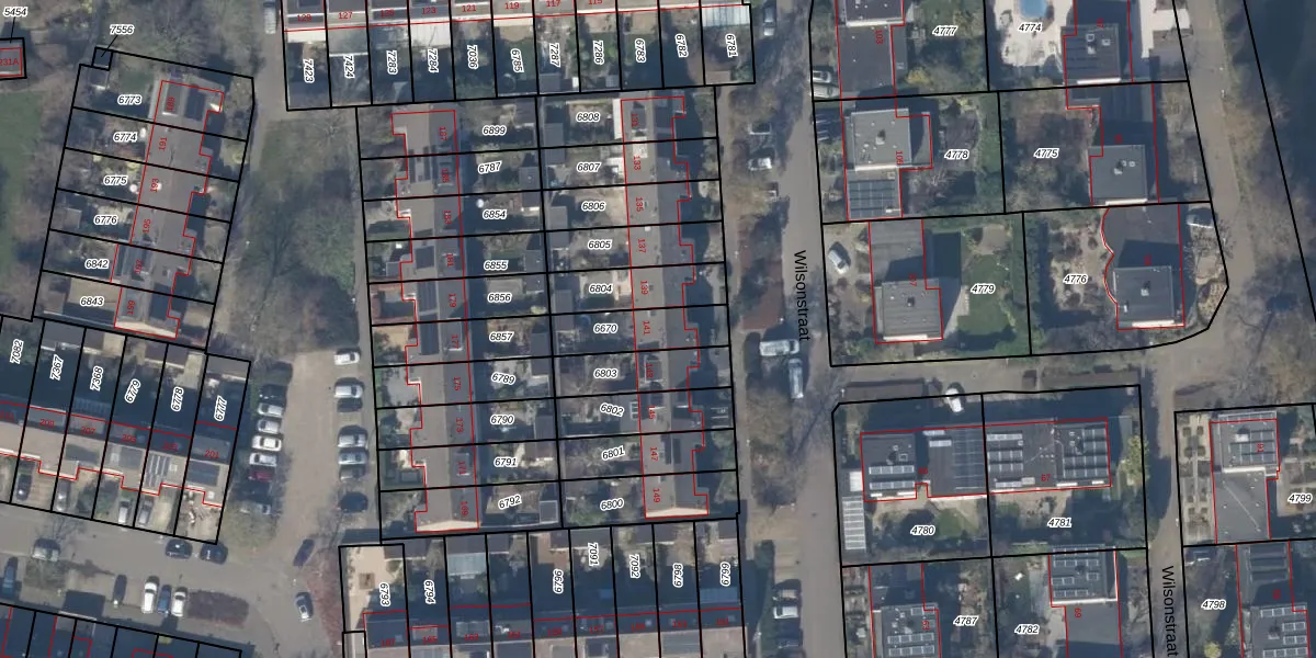 Het perceel waarop Wilsonstraat 141 staat heeft een oppervlakte van 172 m². Dit is een middelgroot perceel. De perceeloppervlakte wordt geregistreerd door het Kadaster. Gedetailleerde informatie over de maten van dit perceel kunt u vinden in het rapport Kadastrale kaart met maatvoering van Wilsonstraat 141.