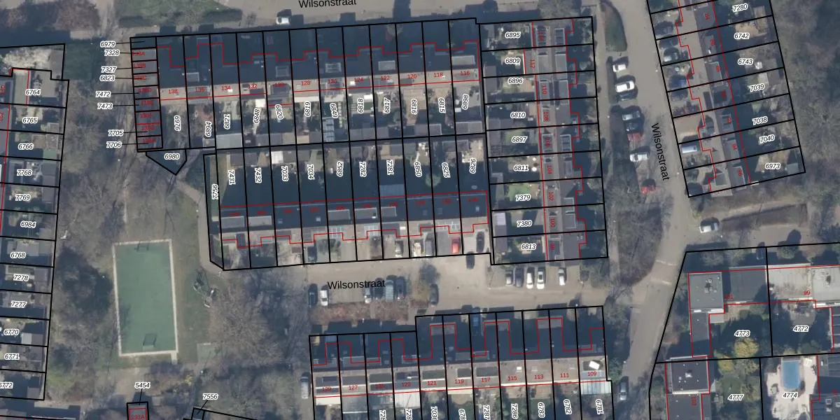 Het perceel waarop Wilsonstraat 144 staat heeft een oppervlakte van 180 m². Dit is een middelgroot perceel. De perceeloppervlakte wordt geregistreerd door het Kadaster. Gedetailleerde informatie over de maten van dit perceel kunt u vinden in het rapport Kadastrale kaart met maatvoering van Wilsonstraat 144.
