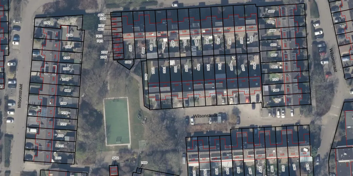 Het perceel waarop Wilsonstraat 154 staat heeft een oppervlakte van 180 m². Dit is een middelgroot perceel. De perceeloppervlakte wordt geregistreerd door het Kadaster. Gedetailleerde informatie over de maten van dit perceel kunt u vinden in het rapport Kadastrale kaart met maatvoering van Wilsonstraat 154.