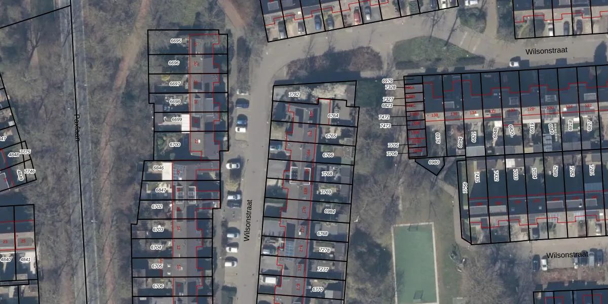 Het perceel waarop Wilsonstraat 164 staat heeft een oppervlakte van 179 m². Dit is een middelgroot perceel. De perceeloppervlakte wordt geregistreerd door het Kadaster. Gedetailleerde informatie over de maten van dit perceel kunt u vinden in het rapport Kadastrale kaart met maatvoering van Wilsonstraat 164.