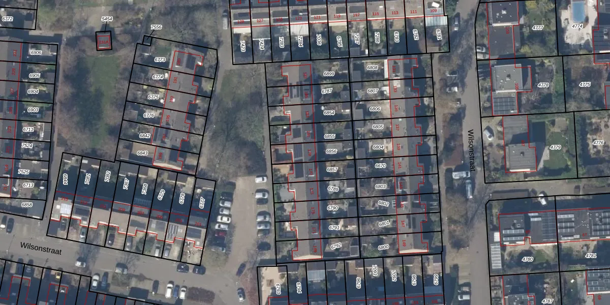 Het perceel waarop Wilsonstraat 179 staat heeft een oppervlakte van 175 m². Dit is een middelgroot perceel. De perceeloppervlakte wordt geregistreerd door het Kadaster. Gedetailleerde informatie over de maten van dit perceel kunt u vinden in het rapport Kadastrale kaart met maatvoering van Wilsonstraat 179.