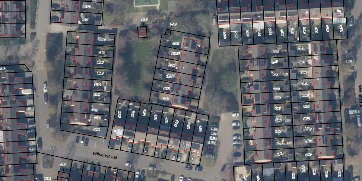 Het perceel waarop Wilsonstraat 197 staat heeft een oppervlakte van 169 m². Dit is een middelgroot perceel. De perceeloppervlakte wordt geregistreerd door het Kadaster. Gedetailleerde informatie over de maten van dit perceel kunt u vinden in het rapport Kadastrale kaart met maatvoering van Wilsonstraat 197.
