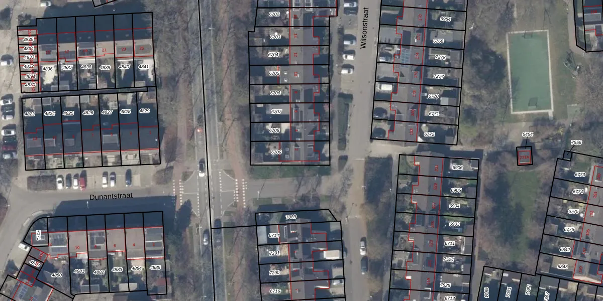 Het perceel waarop Wilsonstraat 2 staat heeft een oppervlakte van 213 m². Dit is een middelgroot perceel. De perceeloppervlakte wordt geregistreerd door het Kadaster. Gedetailleerde informatie over de maten van dit perceel kunt u vinden in het rapport Kadastrale kaart met maatvoering van Wilsonstraat 2.