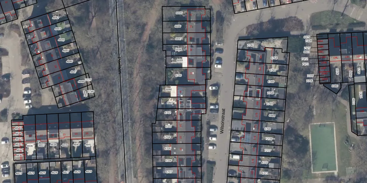 Het perceel waarop Wilsonstraat 20 staat heeft een oppervlakte van 162 m². Dit is een middelgroot perceel. De perceeloppervlakte wordt geregistreerd door het Kadaster. Gedetailleerde informatie over de maten van dit perceel kunt u vinden in het rapport Kadastrale kaart met maatvoering van Wilsonstraat 20.