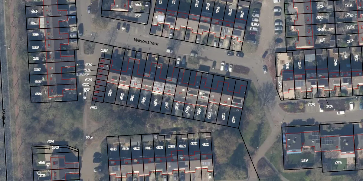 Het perceel waarop Wilsonstraat 37 staat heeft een oppervlakte van 158 m². Dit is een middelgroot perceel. De perceeloppervlakte wordt geregistreerd door het Kadaster. Gedetailleerde informatie over de maten van dit perceel kunt u vinden in het rapport Kadastrale kaart met maatvoering van Wilsonstraat 37.