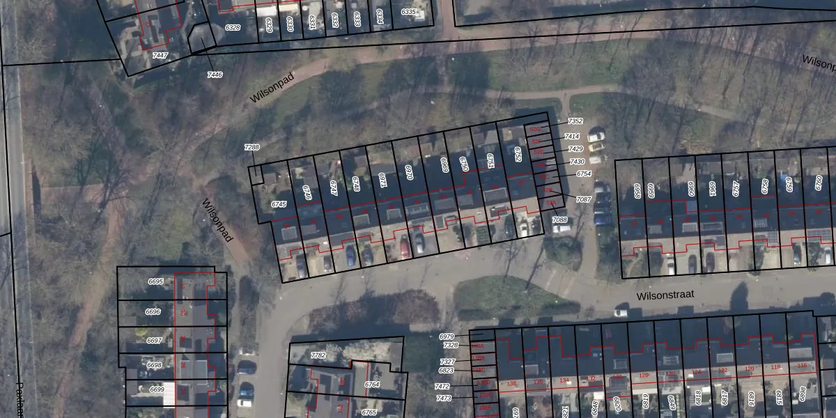 Het perceel waarop Wilsonstraat 44 staat heeft een oppervlakte van 182 m². Dit is een middelgroot perceel. De perceeloppervlakte wordt geregistreerd door het Kadaster. Gedetailleerde informatie over de maten van dit perceel kunt u vinden in het rapport Kadastrale kaart met maatvoering van Wilsonstraat 44.